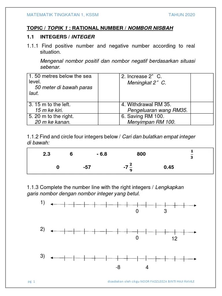Kuiz Matematik Tingkatan 1 Bab 1 Dan 2 - Matematik Tingkatan 1 Bab 1 Bab 3 Worksheet